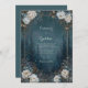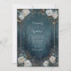 Convidem seus convidados a um romance celeste sob uma cobertura de estrelas com este convite mágico e humorístico da floresta encantada. A design apresenta uma ilustração espantosa e pareceria de uma floresta de pinheiros profunda no crepúsculo, com um belo e estrelado céu noturno a espreitar pelas árvores sombrias. Uma luxuosa e romântica borda de antigas peônias brancas florescentes e folhagem azul empoeirada, acentuada com dicas de bronze e um borrão de poeira mágica de ouro, arma elegantemente a cena. Os tons azuis profundos e azuis da floresta criam uma atmosfera misteriosa e profundamente romântica, fornecendo um cenário surpreendente para seus detalhes de eventos em uma sofisticada e fina estrutura de ouro. Embora perfeito para um casamento encantado, celestial ou estrelado com temas noturnos, este design mágico também é maravilhosamente adequado para uma gala formal, uma bola de inverno, ou uma celebração de aniversário de um marco sob as estrelas. Ponha o tom para uma noite inesquecível de elegância e encanto.