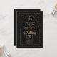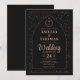 Convite de Casamento Celestial Preto e Dourado com Arco de Lua e Estrelas Este convite de casamento romântico ostenta um fundo preto cativante adornado com um arco celestial composto por uma lua dourada e estrelas. O design é salpicado de estrelas douradas cintilantes, criando uma sensação de magia e maravilha. Este convite é perfeito para um casamento com tema celestial, evocando uma sensação de amor e encantamento.