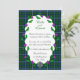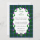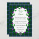 Convite customizável temático do casamento celta usando um dos tartans escoceses do nome de família do clã de Douglas. A informação customizável do convite do casamento é moldada no centro com uma grinalda de cardos escoceses e um nó celta de prata na base. Se você gostaria de um outro tartan não mostrado aqui, para sentir-me por favor livre à mensagem. Forneça por favor o número de referência de STA para o teste padrão que do tartan você gostaria se possível.