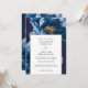 Convites Casamento Chic Azul Marinho e Dourado Floral Moder