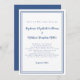 O Convite Elegante e Trendy Wedding apresenta um simples design minimalista contemporâneo com uma dupla borda de quadros em azul clássico sobre um fundo branco nítido. A formulação tradicional proporciona sofisticação eterno mas moderna. Personalize o design de casamento com seus detalhes em letras e scripts clássicos de tendências. A parte traseira da placa corresponde a azul clássico sólido.