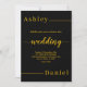 Este elegante convite de casamento preto e dourado é perfeito para um casamento moderno. o simples design apresenta uma elegante caligrafia de ouro num fundo preto.