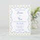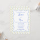 Convide seus hóspedes em estilo com este maravilhoso convite de casamento com tema limão! Apresentando um delicado padrão de citros, sotaques azuis suaves e um quadro escalpado chic, esta design inspirada no Mediterrâneo é perfeita para casamentos costeiros Amalfi, recepções de jardins de verão e comemorações costeiras. Personalize com seus detalhes de casamento um convite refinado e eterno que dá o tom para seu dia especial.