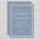O Convite Elegante e Trendy Wedding apresenta um simples design minimalista contemporâneo com uma dupla borda de quadros em branco nítido sobre um fundo azul empoeirado. A formulação tradicional proporciona sofisticação eterno mas moderna. Personalize o design de casamento com seus detalhes em letras brancas e roteiro nítidos. A parte traseira da placa combina em azul sólido empoeirado.