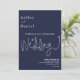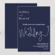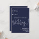 Este elegante convite de casamento azul marinho é perfeito para um casamento moderno. o simples design apresenta uma caligrafia branca elegante num fundo azul.