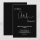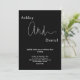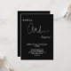 Este elegante convite de casamento preto e branco é perfeito para um casamento moderno. o simples design apresenta uma caligrafia branca elegante num fundo preto.