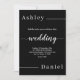 Este elegante convite de casamento preto e branco é perfeito para um casamento moderno. o simples design apresenta uma caligrafia branca elegante num fundo preto.