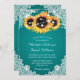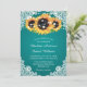 Elegante convite personalizado para casamento teal perfeito para sua festa de casamento rústica de chá inspirado pelas flores de girassol. Personalize facilmente este cartão de casamento teal com os seus detalhes de casamento.