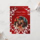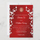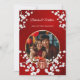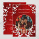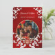 Este elegante convite para o casamento chinês mostra uma foto redonda cercada por galhos florescentes de cereja branca e um símbolo de dupla felicidade de ouro redondo em um fundo vermelho floral brilhante. Nomes de noiva e noiva em um roteiro clássico elegante. Convite para casamento chinês ou convite para cerimônia de chá.