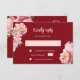 Flores de peônias de aquarela em fundo vermelho de marrom. Cartão de Casamento Chinês RSVP.