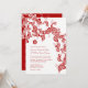 Convites Casamento Chinês Elegante de Peacock Floral Red Bo