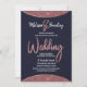 Elegante, chic e moderno falso esmalte rosa dourado impresso e rosa dourado bloco de cor circular recortado em azul marinho e falso texto do roteiro do pincel de ouro rosa, convites para casamento. Este design clássico e sofisticado é perfeito para o casal de competição de tendências e na moda. Personalize com sua própria mensagem na frente, assim como um monograma personalizado inicial no verso. Todas as impressão de fotos.