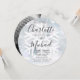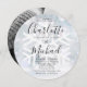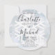 Apresentando nomes elegantes de estilo de assinatura juntamente com sua foto especial, este convite circular de casamento no inverno pode ser personalizado com seus detalhes de casamento em letra chic. Projetado por Thisnotme©