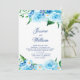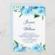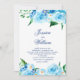 Um convite alegre para o casamento com lindas flores aquáticas de diferentes tons de folhas azuis e verdes e um roteiro delicado e elegante com fundo azul claro e sólido no fundo. Para uma bela e tenda temática azul Floral Celebração cercada pela Natureza. Você pode alterar o texto no menu Personalizar. Por favor, entre em contato comigo para obter ajuda. Os produtos correspondentes estão disponíveis.