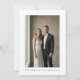 Este convite de casamento apresenta nomes em letra cursiva elegante combinados com tipografia serif clássica em um layout atemporal preto e branco. A borda dupla limpa e a redação tradicional criam um visual refinado perfeito para cerimônias formais e casamentos de gala. O verso inclui uma foto vertical, adicionando um toque pessoal e moderno ao design clássico. Uma escolha sofisticada para casais que planejam uma celebração atemporal e elegante.