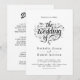 Este elegante convite de casamento preto e branco é perfeito para um casamento moderno. O simples design apresenta uma caligrafia preta elegante sobre um fundo branco limpo. O cartão de convite inclui os detalhes do casamento no verso, em vez de pagar um cartão separado.