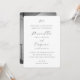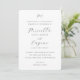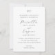 Convite de casamento clássico com seu monograma e nomes em uma escrita elegante e detalhes do evento em uma fonte serifada tradicional.