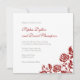 Elegante, vintage, rosa floral, design de convite para casamento. Delicar o padrão do canto do rosa em vermelho. Personalize com os seus nomes no crimson rosa red script e as suas informações de casamento em letra chic black sage. Projetado para combinar com nossa Coleção de Casamentos de Locais de Rosas vermelhas Críticas Clássicas.