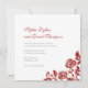 Elegante, vintage, design de convite para casamento floral. Delicar o padrão do canto do rosa em vermelho. Personalize com os seus nomes no crimson rosa red script e as suas informações de casamento em letra chic black sage. Projetado para combinar com nossa Coleção de Casamentos de Locais de Rosas vermelhas Críticas Clássicas.