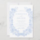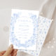 Mergulhe na sofisticação refinada com este belo convite clássico de casamento boêmico, mostrando ilustrações graciosas de arte de linhagem branca formando intricadamente uma coroa cativante sobre fundo azul empoeirado. Ideal por adicionar um ar de charme à sua celebração de primavera ou verão, este convite incorpora elegância eterno e beleza delicada.
