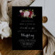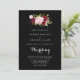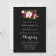 Este clássico convite de casamento preto tropical é perfeito para um casamento rústico. O design de marsala artístico bordo apresenta rosas de aquarela, verdes, cor-de-rosa, burgundy e blush, combinados com verde, bem arrumados num buquê de flores gracioso e radiante.