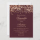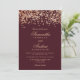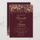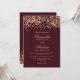 Perfeito para o outono e casamentos no inverno, este clássico confete rosa de ouro vermelho burgundy apresenta uma elegante tipografia caligráfica. O fundo vermelho é cheio e editável e os elementos podem ser movidos ao redor.