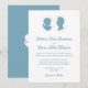 Clássico e elegante, Bridgerton inspirou, design de convite de casamento de regência azul. Personalize com seus nomes em uma fonte elegante de script e suas informações de casamento em uma fonte de serifa de chic. Projetado para combinar com nossa Coleção de Casamentos Clássicos de Camarões de Regência.