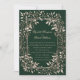 Esses convites mágicos de casamento da floresta são perfeitos para quem sonha com uma celebração encantada da floresta, apresentando um rico fundo verde-esmeralda da floresta com um intrincado e elegante quadro botânico com influências venenosas que capta a essência de um casamento de conto de fadas. Esta modesta floresta escura convida a misturar verduras profundas com uma delicada casca de ovo branca, criando uma atmosfera mística, mas misteriosa. Ideal para casamentos góticos, com temas florestais ou fantasias, cada convite encantado evoca o alento de um casamento florestal escuro, com elementos místicos de floresta, garantindo que seu dia especial seja inesquecível a partir do momento em que seus convidados receberem seu convite.