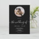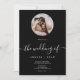 Simples e elegante convite de casamento de um roteiro de fotos preto e branco com esta caligrafia clássica e elegante o casamento de Script em preto e branco. Adicione sua foto de casal em uma máscara circular.