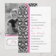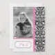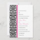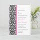 Um padrão de papel de parede branco e preto com sotaques cor-de-rosa destaca este convite clássico de casamento. Facilmente personalizado com suas próprias informações. Disponível em cores alternativas com cartões salvos na data, cartões de recepção, cartões de resposta e favores correspondentes.