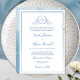 Convites Casamento clássico de monograma azul