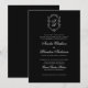 Este clássico convite formal clássico de casamento preto e branco apresenta um design sofisticado e intemporal limpo, com seu roteiro de caligrafia vintage e elegante crista de monograma floral.