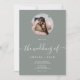 Simples e elegante convite de casamento de sábio verde e roteiro de fotos branco com esta caligrafia clássica e elegante o casamento de Script em verde-sábio e branco. Adicione sua foto de casal em uma máscara circular.