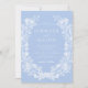 Mergulhe na sofisticação refinada com este belo convite clássico de casamento boêmico, mostrando ilustrações graciosas de arte de linhagem branca formando intricadamente uma coroa cativa sobre fundo azul pastel. Ideal por adicionar um ar de charme à sua celebração de primavera ou verão, este convite incorpora elegância eterno e beleza delicada. Envolva-se no atrativo deste elegante convite de casamento e dê o tom para uma ocasião inesquecível.