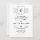 Monograma preto e branco elegante, convite para casamento. Vintage inspirou crista no estilo moderno minimalista.
