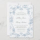 Este elegante convite para o casamento inspirado em músicas mostra um sofisticado castelo poeira molhado de flores e folhagem, incorporando charme de eterno e artista. Perfeito para casais que buscam um tema de casamento francês, jardim vintage, botânica ou jardim, este convite capta um ar de graça e tradição enquanto permanece sem esforço moderno. Ideal para casamentos elegantes, combina detalhes intrincados desenhados à mão com uma paleta azul harmoniosa para criar uma marca verdadeiramente inesquecível.