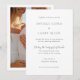 Convite de casamento elegante com um design simples e uma combinação moderna de fontes serif, sans serif e script.