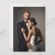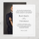 Um convite de casamento saboroso com simplicidade clássica, este design apresenta uma fina borda prateada em torno do seu texto. O texto da amostra mostra ambos os conjuntos de pais como anfitriões do casamento. O posicionamento do layout de texto elegante pode ser movido e ajustado de acordo com o texto desejado. O popular fundo branco soma-se à simplicidade limpa deste design. Um modelo de foto na parte traseira dos convites permite que você personalize ainda mais este convite com sua foto escolhida.