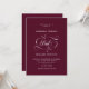 Convite Clássico Elegante para Casamento Burgundy. Design apresenta o script de caligrafia ''e'' em letras de tendências em um fundo burgundy.