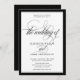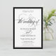Convite clássico de casamento clássico, preto e branco moderno e elegante. Design com fundo preto profundo, roteiro de caligrafia ''o casamento de'' e detalhes do casamento com quadro branco dentro. Adicione os detalhes do evento usando os campos modelo fornecidos e clique em "personalizá-lo" para editar este modelo.