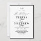 Convite de casamento preto e branco elegante e sofisticado com caligrafia manuscrita elegante e monograma moderno. Convite simples e moderno, sofisticado e elegante.