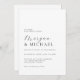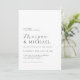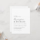 Este convite de casamento moderno é simples e na moda, usando uma combinação única de letras de roteiro escrito à mão e serifa elegante para os nomes da noiva e do noivo. Todo o texto é justificado à esquerda para um elegante olhar contemporâneo e sentir com o texto no tipo de maiúsculas popular. O verso do convite tem os detalhes e as informações de RSVP com um código de QR para incluir o site de casamento para os convidados a examinar suas respostas. Esse olhar clássico limpo com o detalhamento na moda do nome da noiva adiciona esse pop especial de estilo, mantendo a simplicidade de um design minimalista. Há muito espaço em branco no convite que oferece uma apresentação limpa e desordenada. O estilo dos nomes da noiva e do noivo cria seu próprio logotipo de casamento pessoal para usar em outros artigos de papelaria e produtos correspondentes nesta suíte. Se você achar que precisa reorganizar linhas de texto, selecione "clicar para personalizar mais" para abrir o editor de texto do cheio, onde você pode clicar e arrastar o texto conforme desejar ou reformatar o alinhamento do texto conforme necessário.