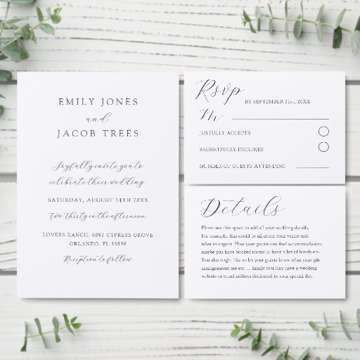 Um modelo de casamento elegante, moderno e minimalista apresenta um layout de texto preto eterno em um fundo branco nítido com cantos suavemente arredondados para um acabamento refinado. Projetado com uma estética clássica e elegante, ele oferece um visual limpo e sofisticado que se adapta a uma variedade de estilos de casamento. Fácil de personalizar com seus detalhes, este modelo oferece uma maneira perfeita de criar a papelaria de casamento na moda e contemporânea com um apelo de eterno.