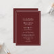 Um convite de casamento clássico, elegante e burgundy, com caligrafia de script. Perfeito para a noiva moderna ter um caso formal. Consulte a coleção de cheios aqui: https://www.zazzle.com/collections/elegant_burgundy_classic_script_wedding-119551906868087326 Entre em contato com o designer para obter produtos correspondentes. Copyright Anastasia Surridge for Elegant Invites, todos os direitos reservados.