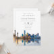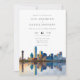 Este convite de casamento aquarela da silhueta de Dallas pode ser personalizado com suas informações em tipografia elegante com o código QR do site do seu casamento no verso. Criado por Thisisnotme©