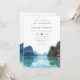 Este convite de casamento aquarela elegante de Phuket, Tailândia, pode ser personalizado com suas informações em tipografia sofisticada com o código QR do site do seu casamento no verso. Criado por Thisisnotme©
