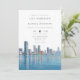 Este convite de casamento aquarela com a silhueta de Miami pode ser personalizado com suas informações em tipografia elegante com o código QR do seu site de casamento no verso. Projetado por Thisisnotme©
