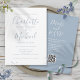 Com nomes de estilo característico, este convite de casamento azul empoeirado elegante pode ser personalizado com todas as informações especiais do seu dia de casamento na frente e os detalhes do seu site de casamento e código QR no verso. Projetado por Thisisnotme©