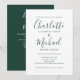 Com nomes no estilo de assinatura, este convite de casamento em verde esmeralda elegante pode ser personalizado com todas as informações especiais do seu casamento na frente, detalhes do seu site de casamento e seu código QR no verso. Projetado por Thisisnotme©
