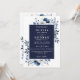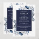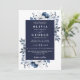 Este convite de casamento floral azul marinho elegante pode ser personalizado com suas informações em tipografia moderna com o código QR do site do seu casamento no verso. Criado por Thisisnotme©